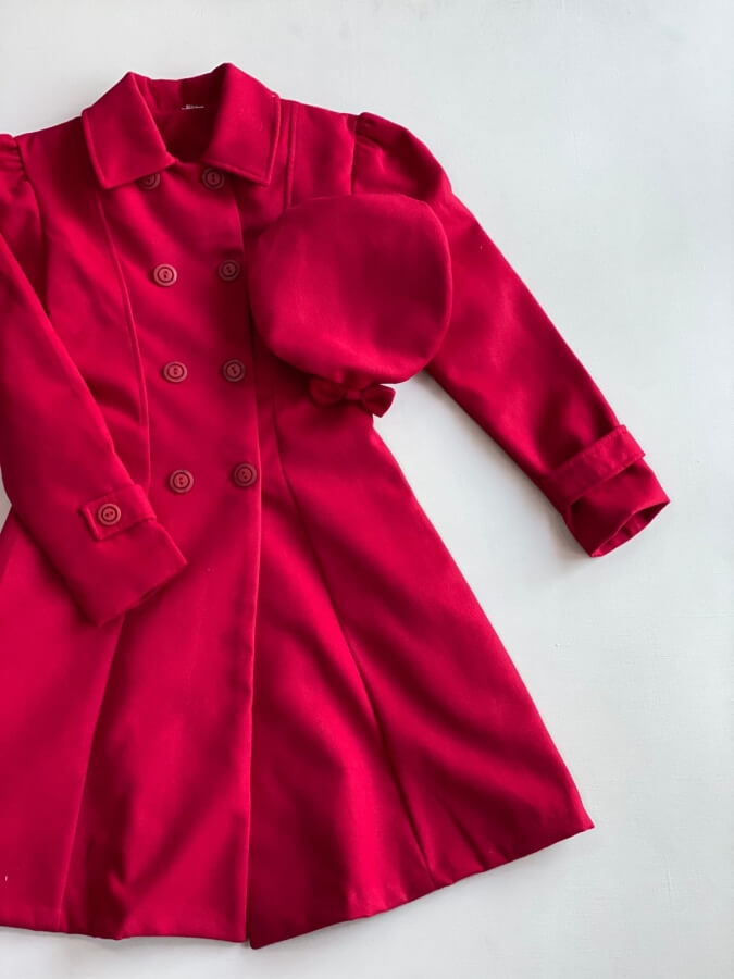 11117. Abrigo rojo de lana con boina