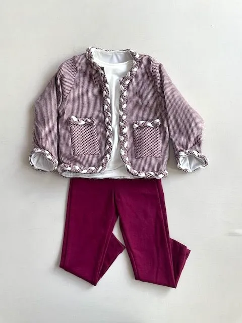 11199. Conjunto tres piezas de saquito tinto con detalle