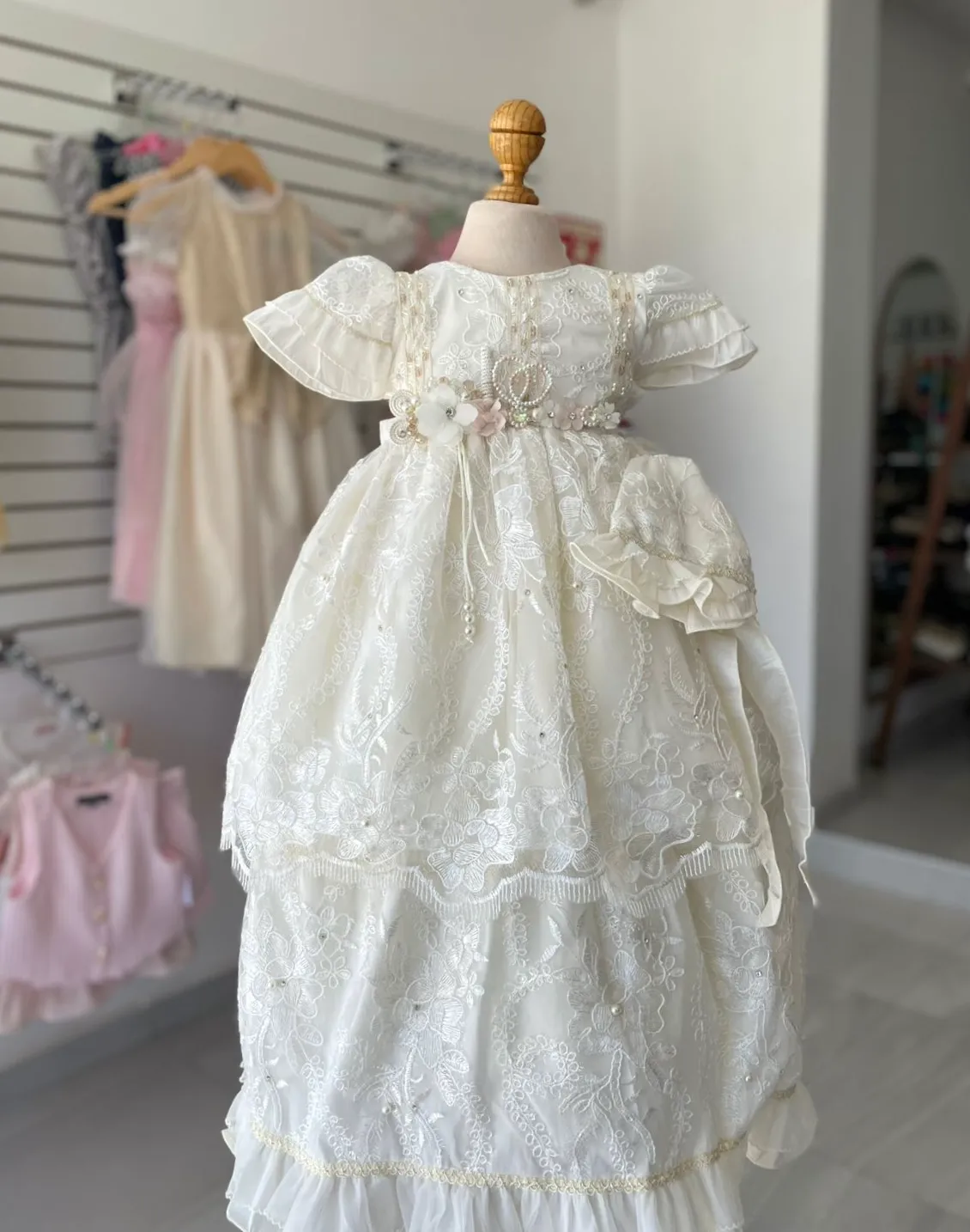 2009. Ropon desmontable con detalles de flor en tonos nude