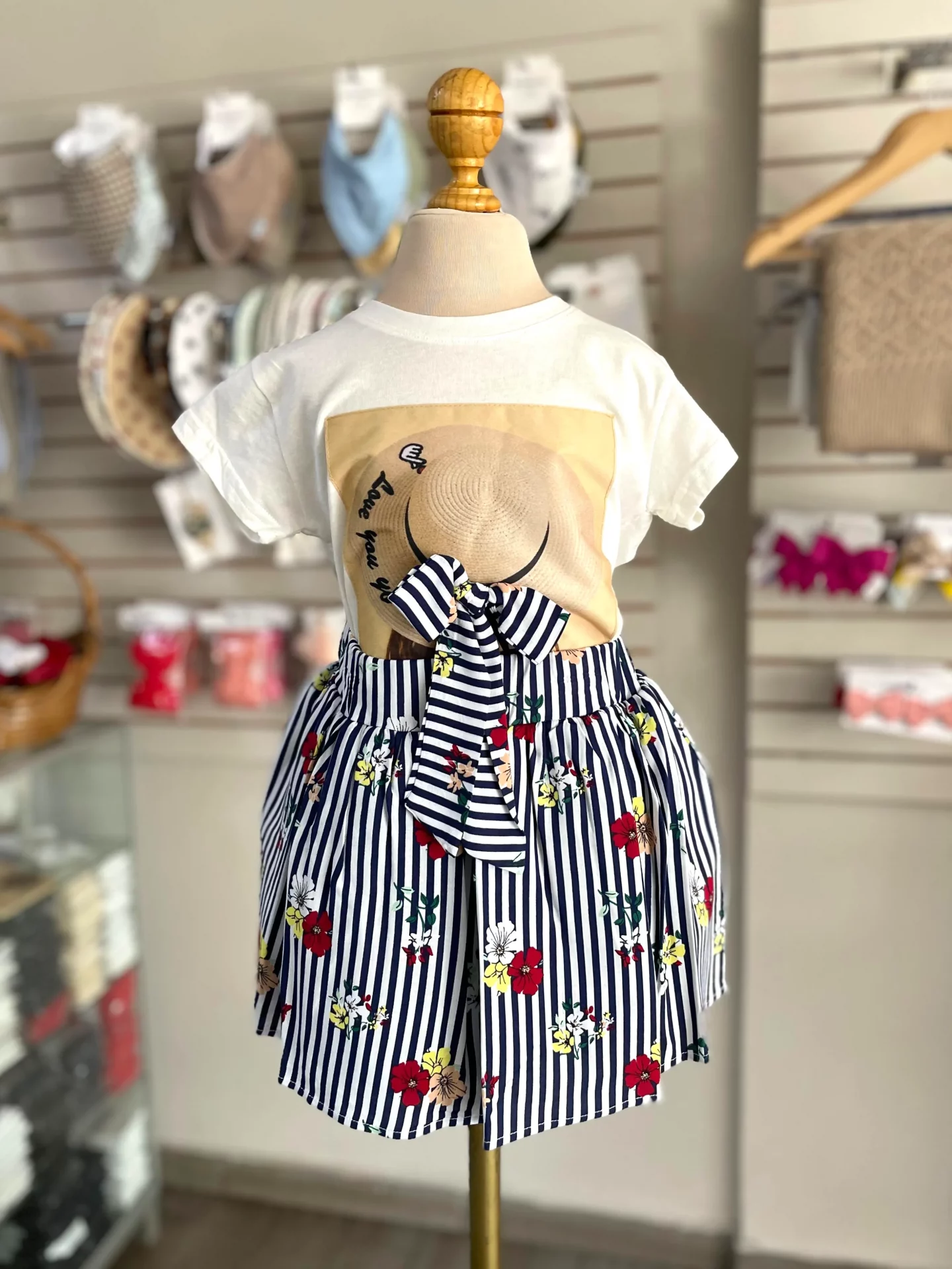 34175. Conjunto de falda a rayas y monita de sombrero