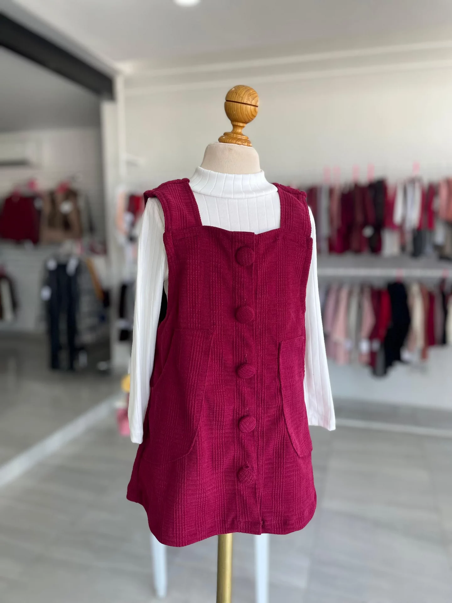 34220. Vestido tinto de botones grandes