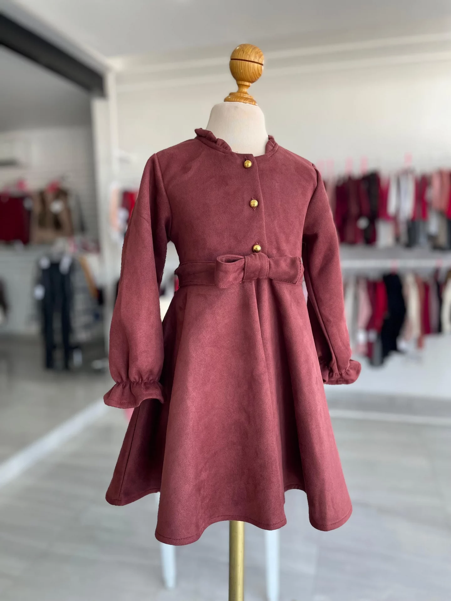 34225. Vestido tinto de gamuza