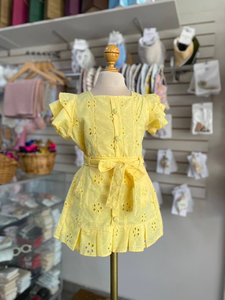 3437. Conjunto de tira bordada en amarillo con detalle en mangas