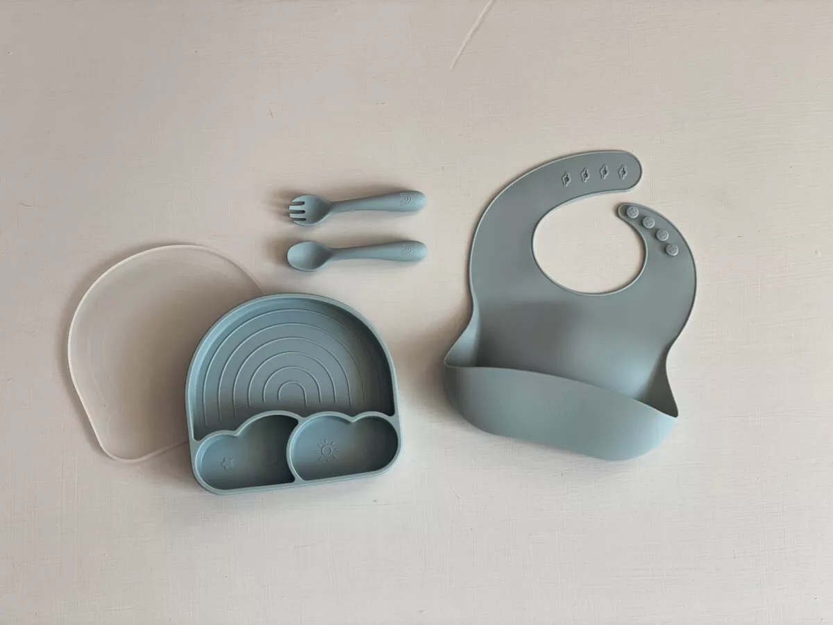 6358. Plato de arcoiris adherible con tapa, babero antiderrame y dos cubiertos