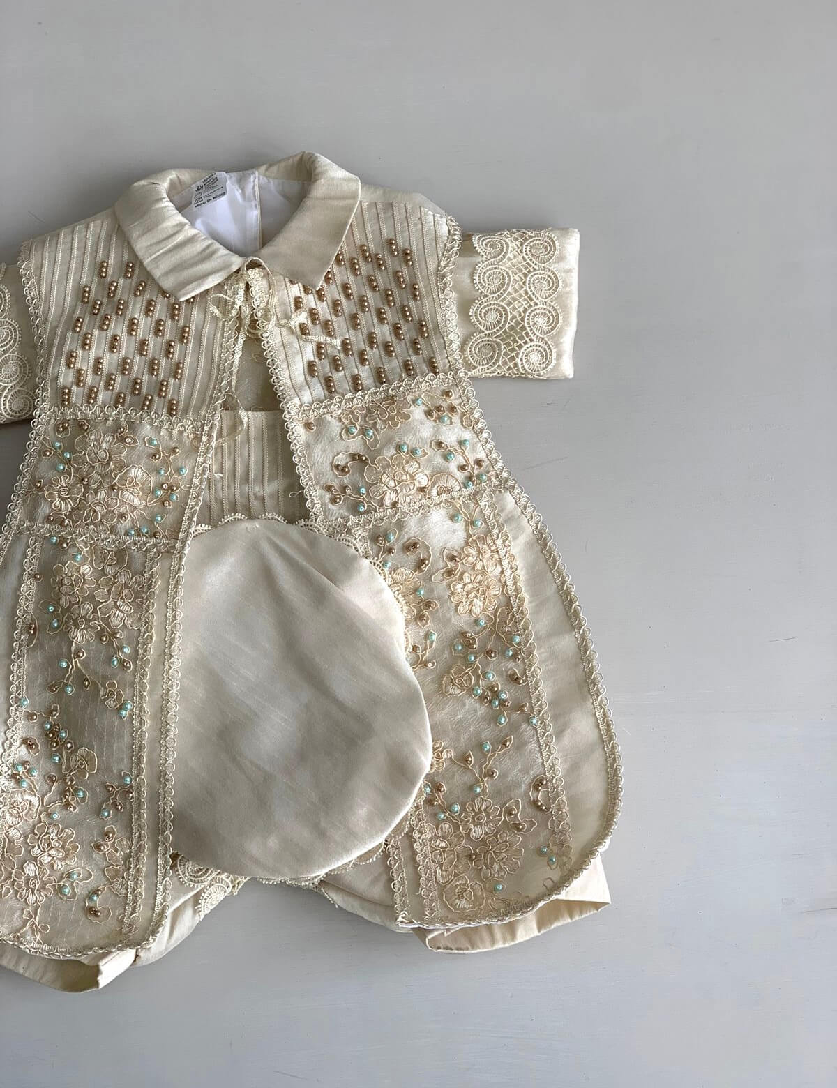 645. Ropon de estola totalmente bordada con detalles en oscuro y azul