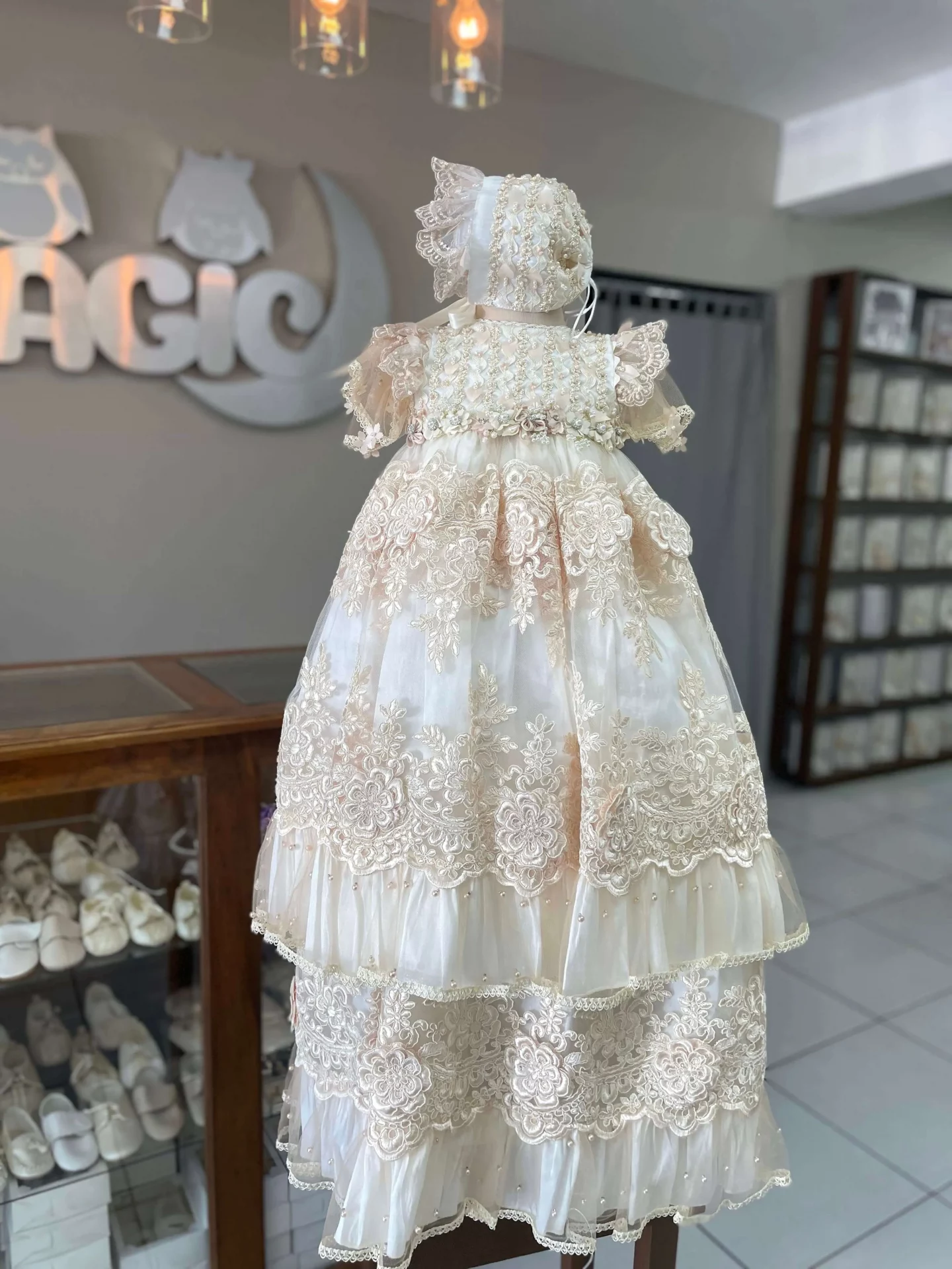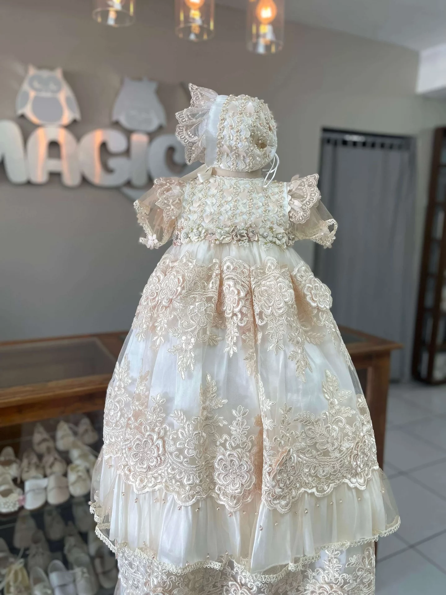 7221. Ropon desmontable extra largo, con tonalidades en rosa y encaje