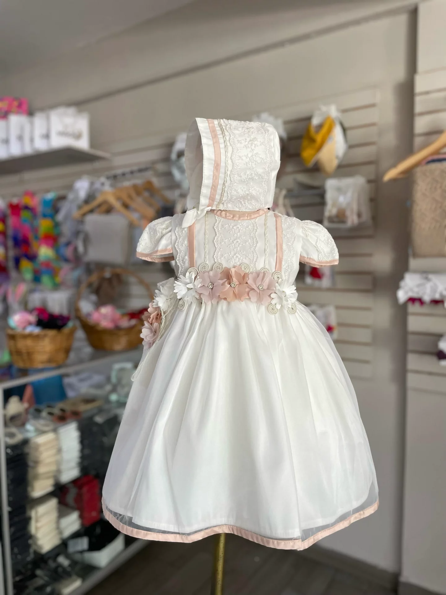 7294. Ropon con detalle de flores y liston en rosa