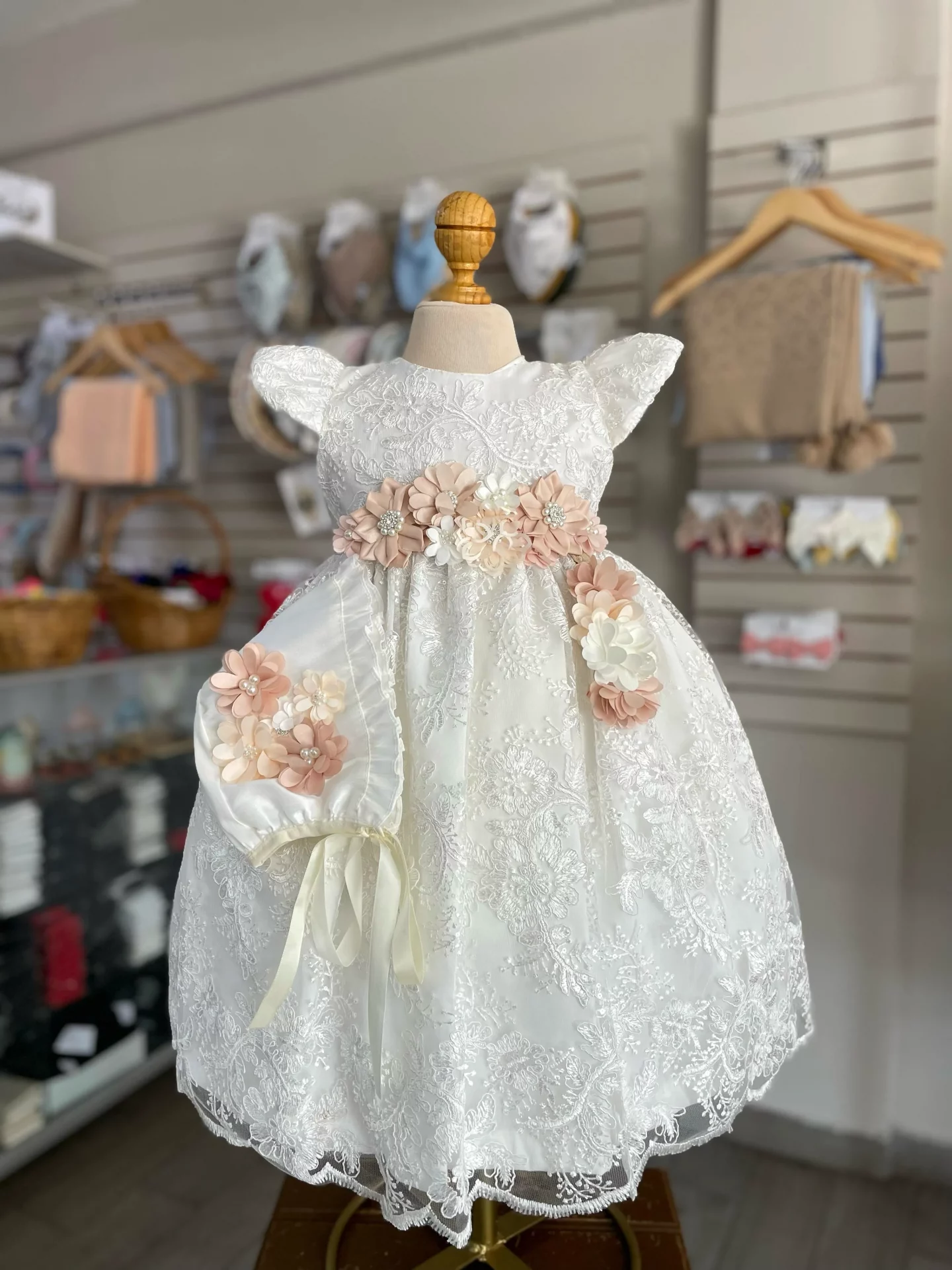 7304. Ropon en encaje con detalles en durazno