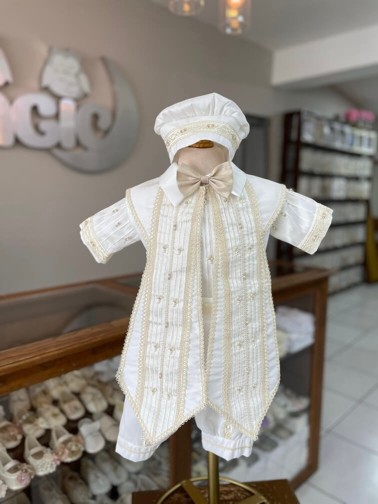 762. Ropon de estola con moño y detalle de cruz en perla