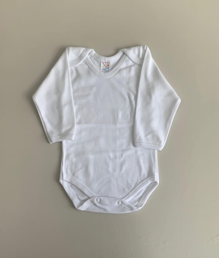 9130. Pañalero blanco de cuello rendondo en manga larga