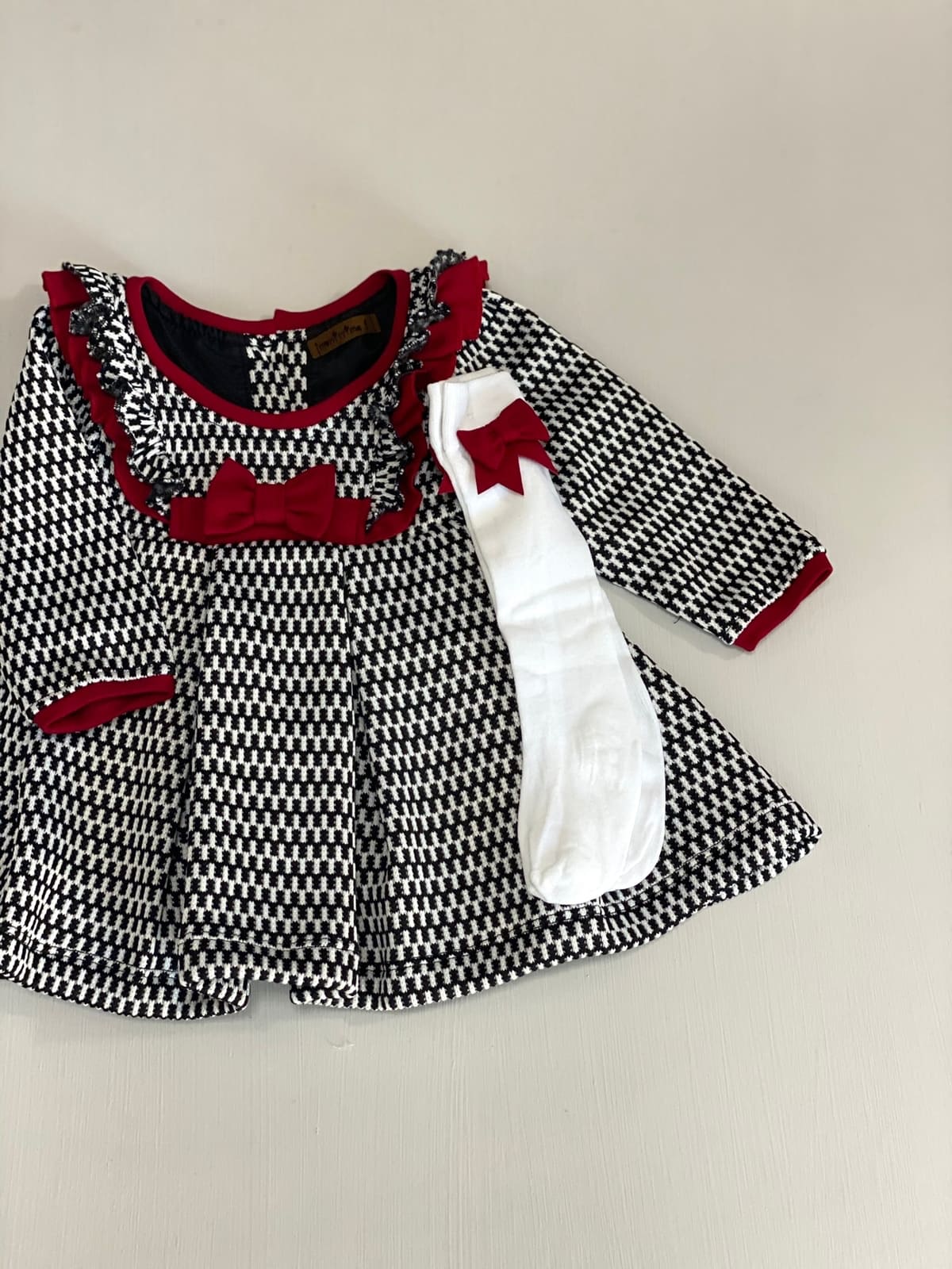 345. Vestido negro con moño rojo